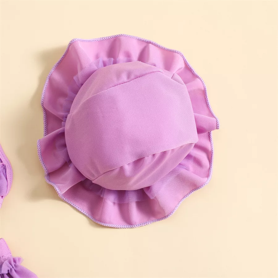 Son chapeau assorti et ses jolis volants donnent un look aussi mignon qu’élégant pour des souvenirs d’été inoubliables.