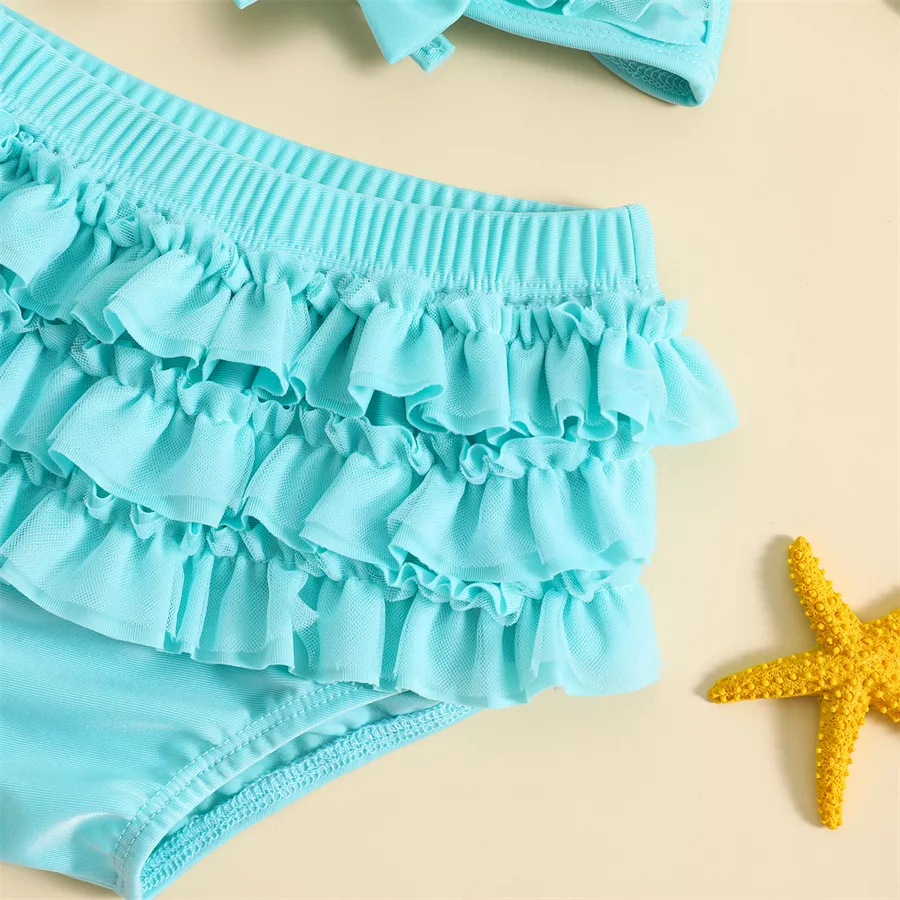 Un adorable maillot de bain 2 pièces pour petite fille, tout en légèreté, pensé pour les premières baignades de votre petite princesse avec style et douceur.